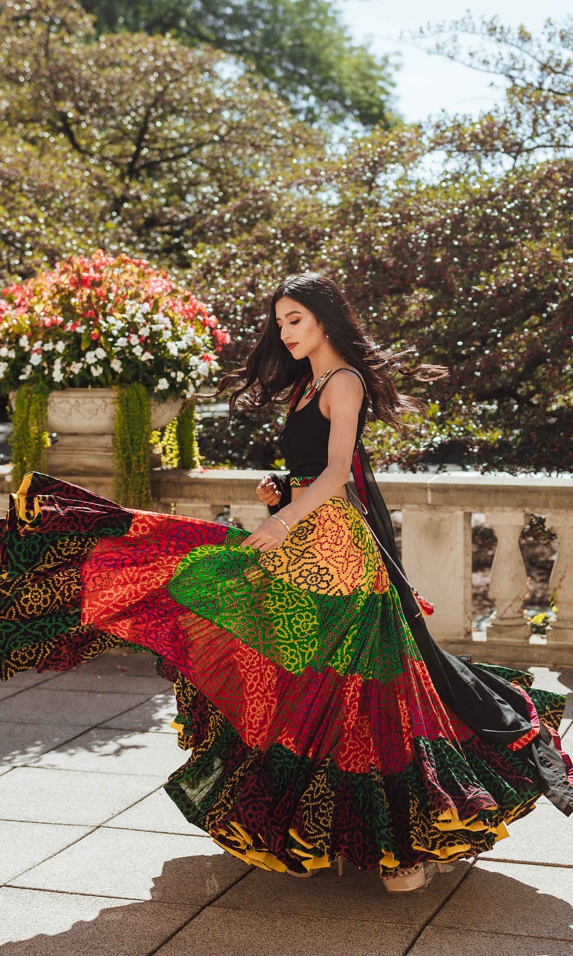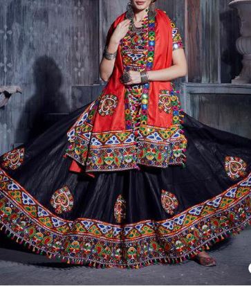 Black Chaniya Choli and Gamthi work Green Dupatta